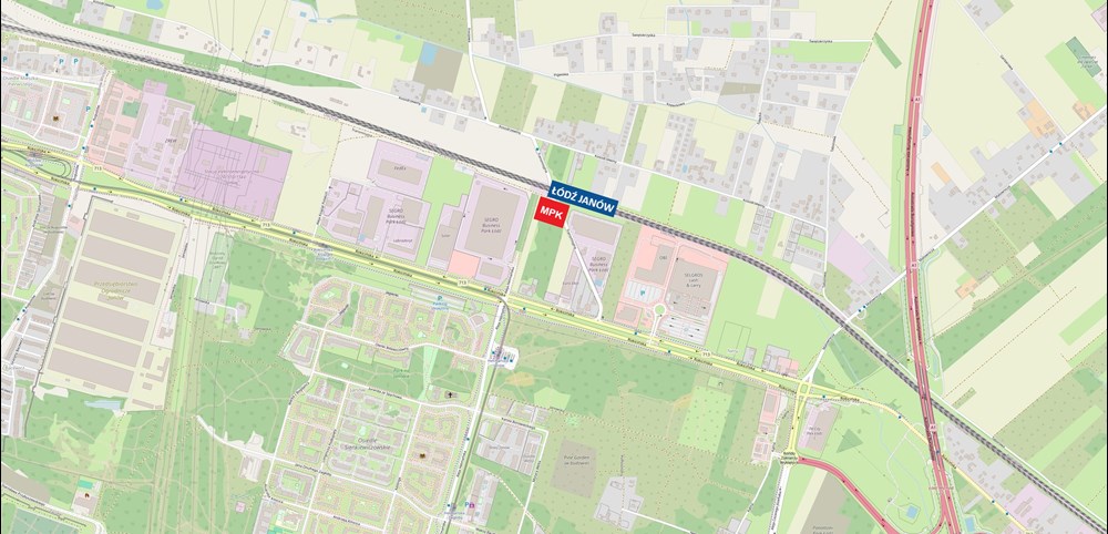 grafika na podstawie Openstreetmap.org | Potencjalna lokalizacja przystanku kolejowego Łódź Janów oraz nowej krańcówki autobusowej