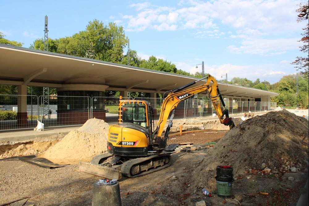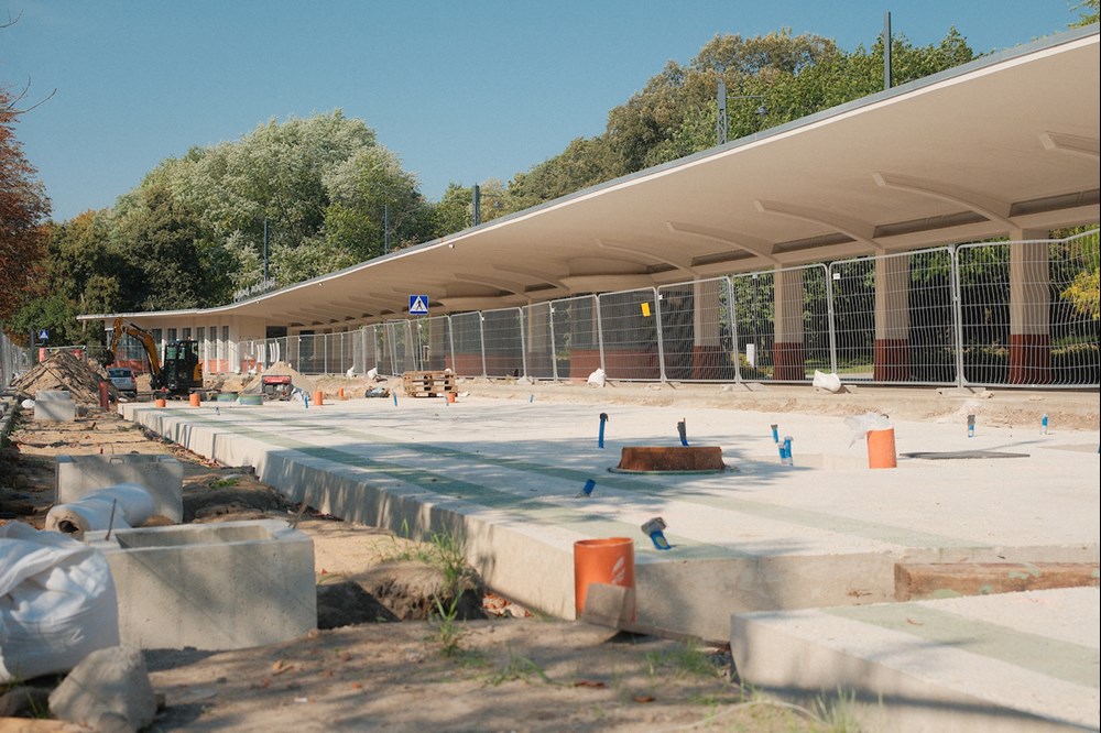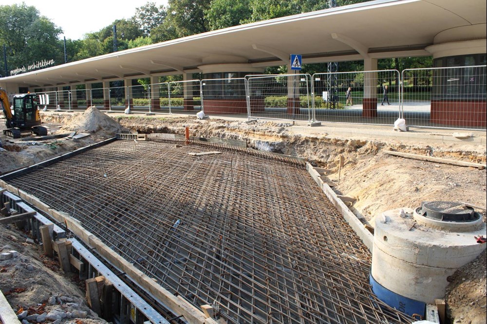 Wykonany został już betonowy fundament pod torowisko wraz z jego odwodnieniem oraz instalacją grzewczą do zwrotnic. Zaczęło się także układanie pierwszych szyn a pośród nich zwrotnice, rozjazdy i łuki. Na końcu będzie układana granitowa kostka, która wypełni przestrzeń przed historycznym budynkiem.