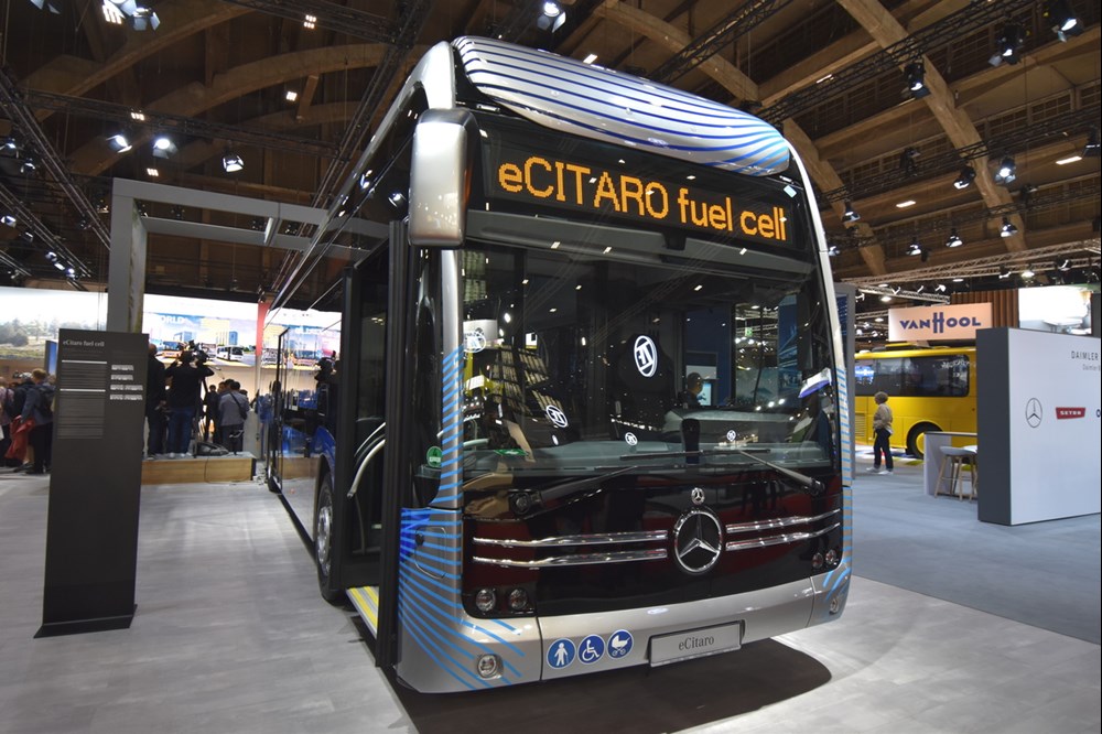 Co pokazał Daimler Buses w Brukseli? Dwa elektryczne Citaro, z których jeden wyposażony został w wodorowy extender, pozwalający na przemieszczanie się na dystans 400 kilometrów w ruchu miejskim i „zwykłego” dwudrzwiowego Citaro z czystym napędem elektrycznym, z zabudowanymi nowymi bateriami NMC3. Zarówno nowszych i starszych elektrycznych Citaro od momenty rozpoczęcia produkcji sprzedano już 500.