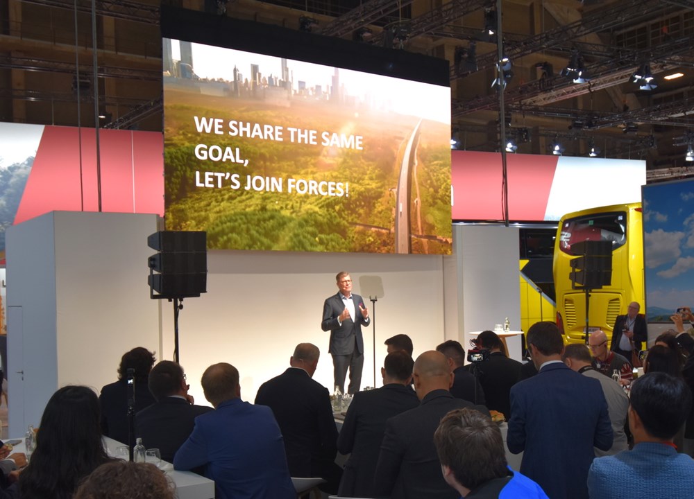 – Zdaję sobie sprawę, że jesteście tu państwo aby wysłuchać informacji o premierach, o nowościach, które przedstawia Mercedes w segmencie autobusów miejskich i turystycznych. Pozwólcie jednak, że powiem dzisiaj o czymś innym – powiedział Till Oberwörder. I odniósł się do polityki Unii Europejskiej.