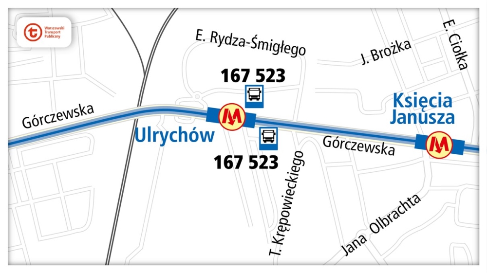 SCHEMAT DOJAZDU KOMUNIKACJĄ MIEJSKĄ DO STACJI METRA BEMOWO I ULRYCHÓW