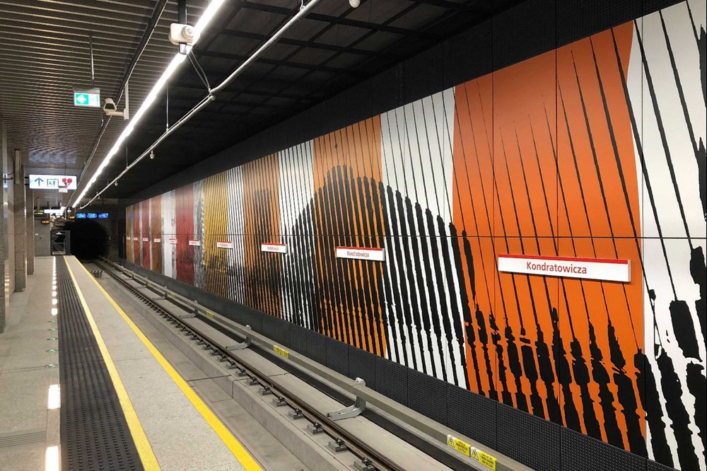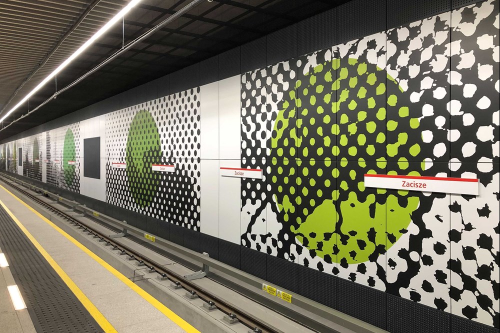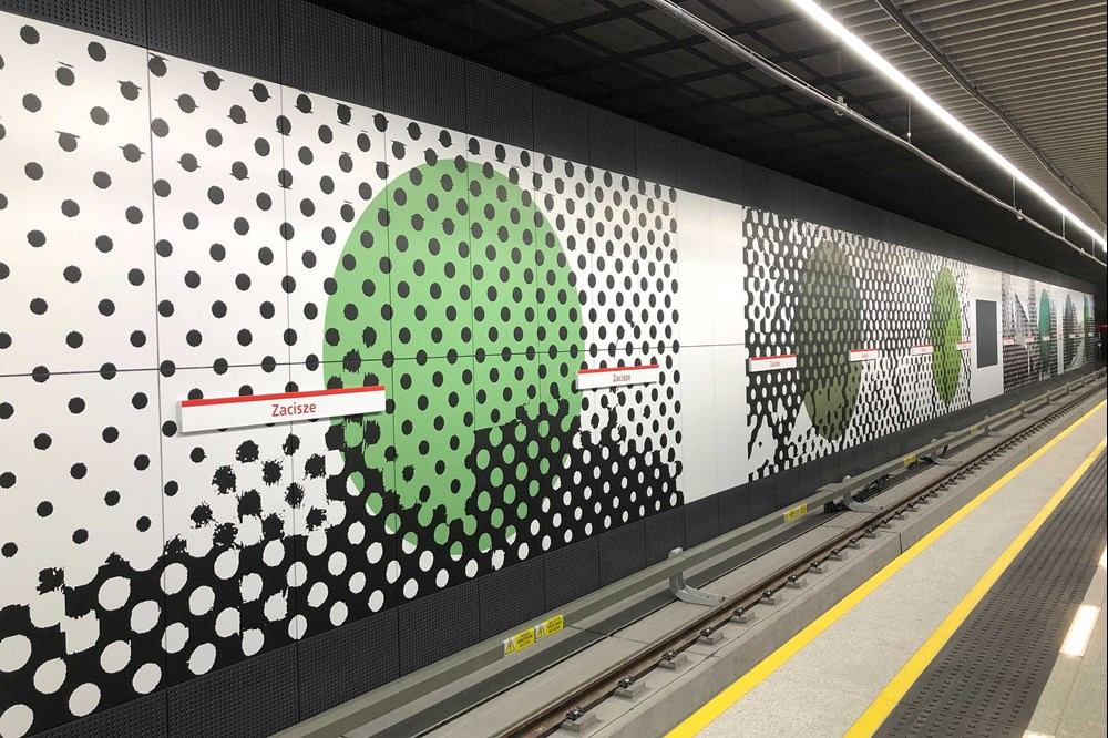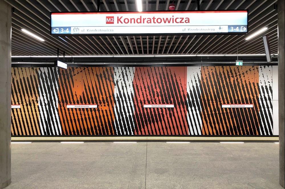 Na ścianach zatorowych montowane są panele z barwnymi grafikami autorstwa Piotra Młodożeńca. Każda ze stacji ma inny motyw plam, na które składają się kropki, linie i kwadraty. Na pozór abstrakcyjne wzory są artystycznym odzwierciedleniem i zniekształceniem panoram okolic budowanych przystanków. Na Bródnie króluje fiolet i granat, na Kondratowicza – tygrysie pasy z kolorem żółtym, pomarańczowym i czerwonym, a na Zaciszu – zieleń.