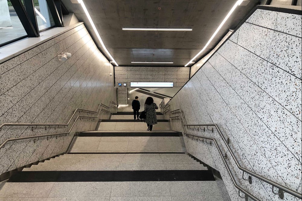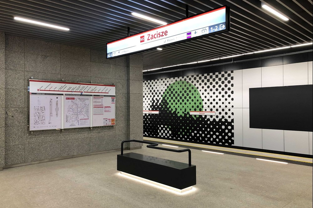 Stacje w skromnej, jasnej stylistyceZa wystrój nowych przystanków – Zacisze, Kondratowicza i Bródno – odpowiada firma ILF – to jej autorstwa są projekty działających już trzech stacji na wcześniejszym odcinku (Szwedzka, Targówek Mieszkaniowy i Trocka). Wykończenie utrzymane jest więc w duchu minimalizmu i w biało-szarych barwach, choć zastosowane rozwiązania i materiały, względem poprzedniego odcinka, różnią się. Nadal jednak panuje wrażenie sterylności.