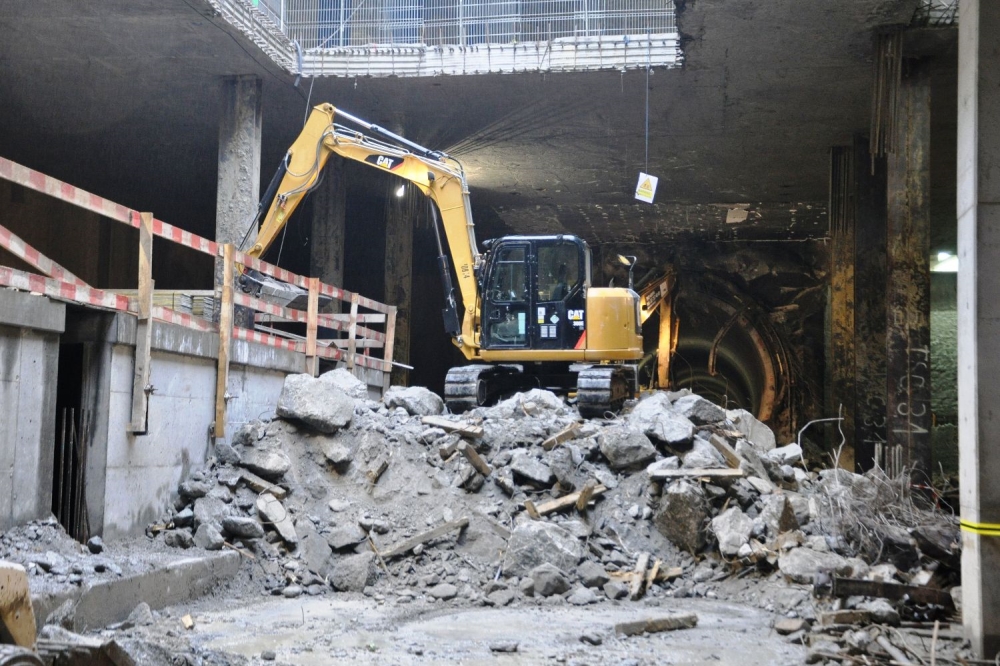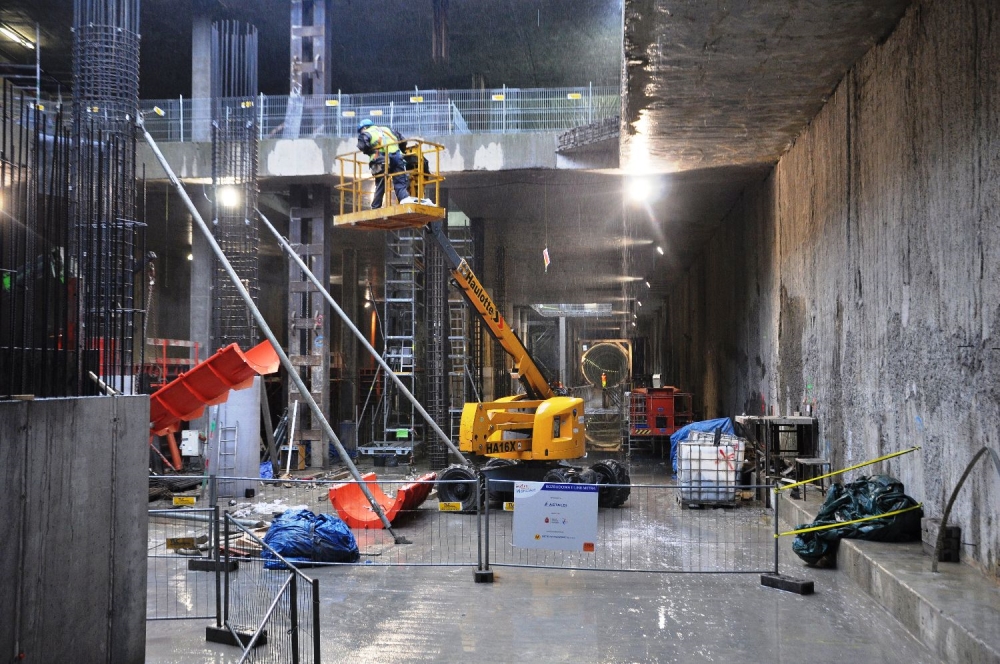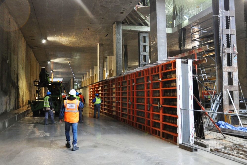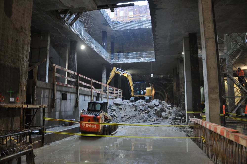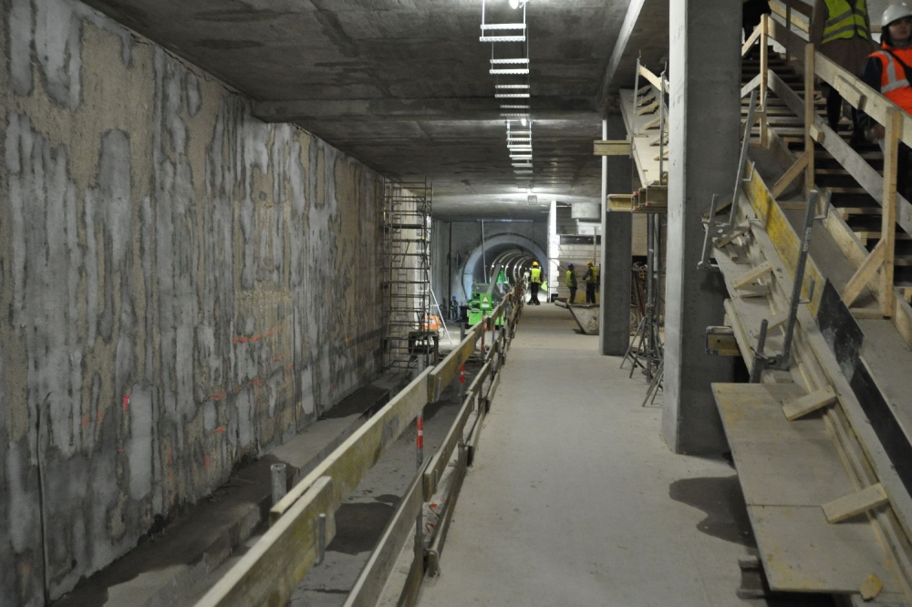 Zakończenie drążenia tuneli umożliwia też zakończenie prac konstrukcyjnych na stacji C16 Szwedzka. – Ta stacja jest najmniej zaawansowana, ale to celowe – tutaj umieszczone było zaplecze tarczy przed drążeniem ostatniego odcinka. Będziemy gonili – mówił Skorupa. – Kończymy demontaż lewej tarczy i kończymy usuwanie elementów związanych z drążeniem tuneli – fałszywego tunelu na potrzeby startu tarczy, kołysek itp. Na poziomie -1 trwają prace wykończeniowe w zakresie pomieszczenia 200, czyli głównego pomieszczenia zasilającego stację – opisywał Paweł Skorupa. Widać już ścianki pod perony, które na sąsiednich dwóch stacjach już są wykonane.