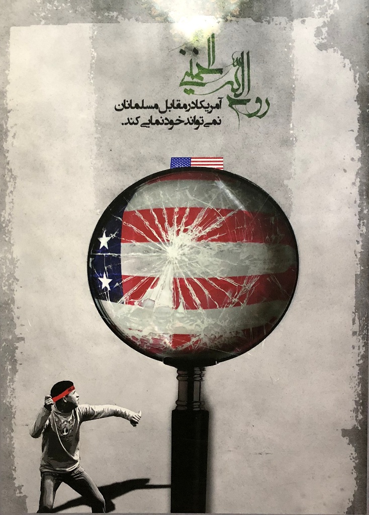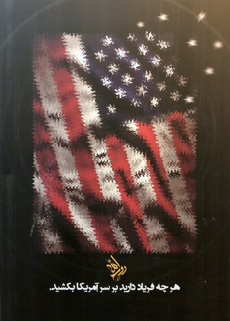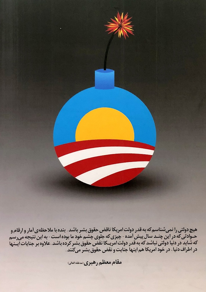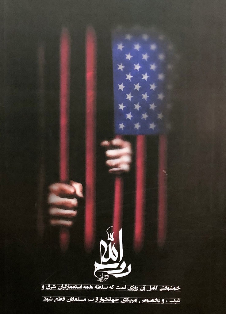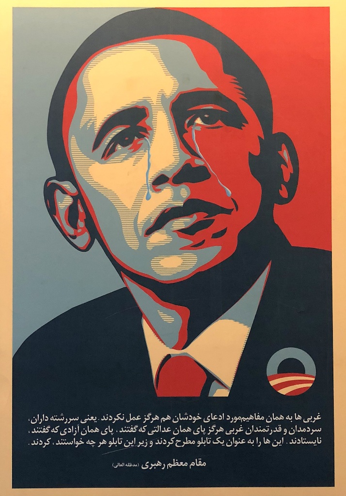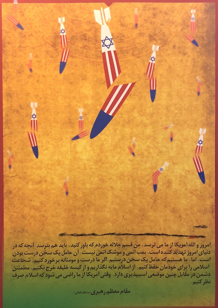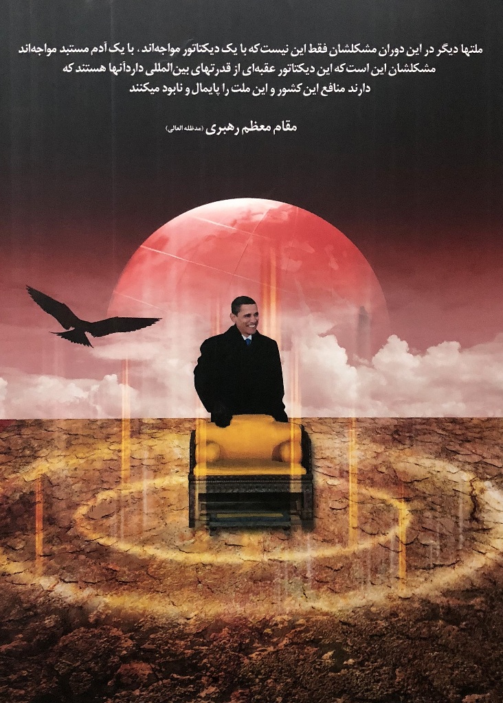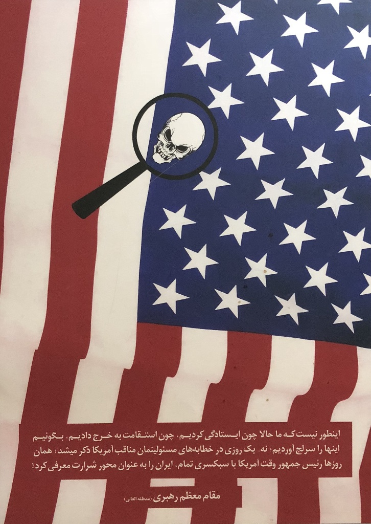 Ostatnio jednak ściany na antresolach stacji stały się idealną powierzchnią dla wystawy antyamerykańskich plakatów. Niezwykle wymowne grafiki są opatrzone cytatami z wypowiedziami ajatollaha Chameneiego, który od 1989 r. jest Najwyższym Przywódcą Iranu. W dużym skrócie ujmując, to religijny przywódca i głowa państwa, który czuwa nad utrzymaniem przez państwo właściwego kierunku, wyznaczonego przez rewolucję. Ali Chamenei ma bezpośredni wpływ na funkcjonowanie kluczowych segmentów państwa i jego instytucji.