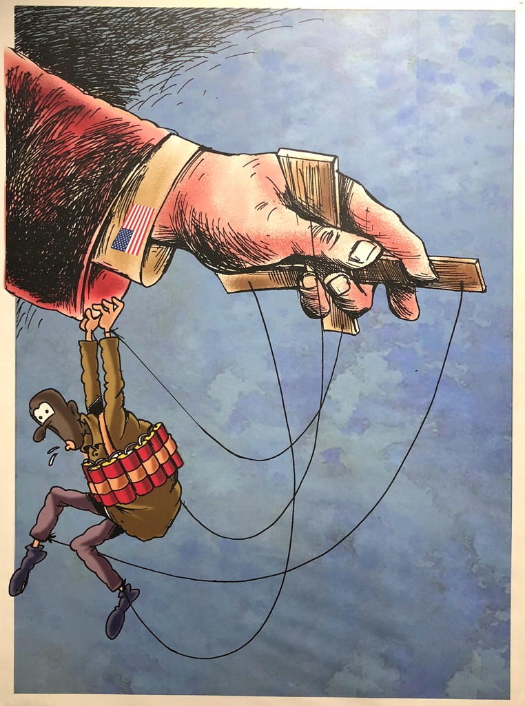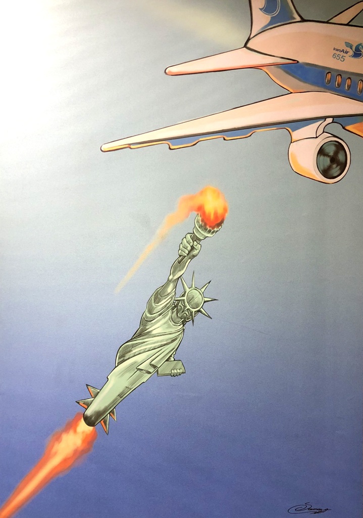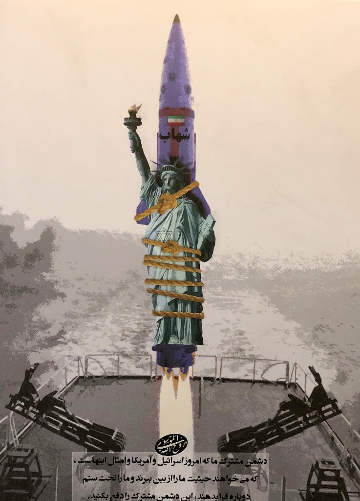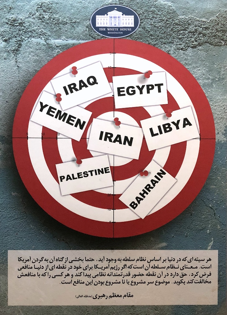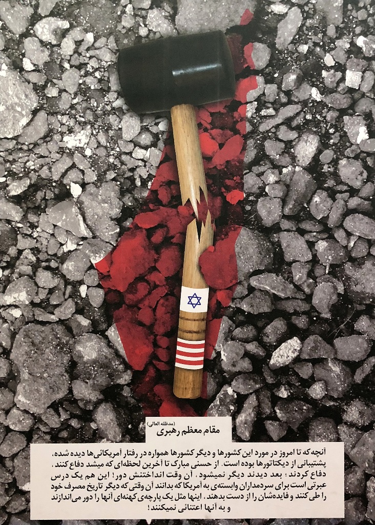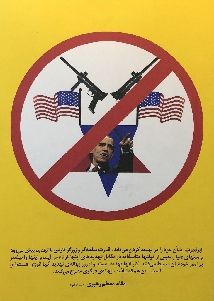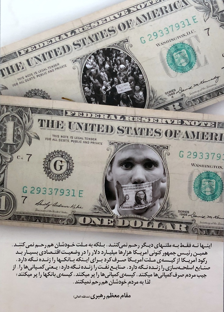 Ostatnio jednak ściany na antresolach stacji stały się idealną powierzchnią dla wystawy antyamerykańskich plakatów. Niezwykle wymowne grafiki są opatrzone cytatami z wypowiedziami ajatollaha Chameneiego, który od 1989 r. jest Najwyższym Przywódcą Iranu. W dużym skrócie ujmując, to religijny przywódca i głowa państwa, który czuwa nad utrzymaniem przez państwo właściwego kierunku, wyznaczonego przez rewolucję. Ali Chamenei ma bezpośredni wpływ na funkcjonowanie kluczowych segmentów państwa i jego instytucji.
