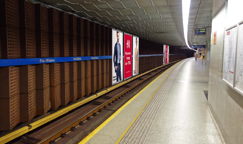 Stacja metra A18 Plac Wilsona, otwarta w 2005 r., często trafia do rankingów najładniejszych na świecie. Nic dziwnego, że znów rozgorzały głosy oburzenia po rozpoczęciu procesu wymiany reklam na tej stacji – z nowymi, podświetlanymi i znacznie większymi nośnikami, zajmującymi całą wysokość ściany. Zmiany stoją w sprzeczności z zeszłorocznymi obietnicami ws. reklam w metrze – urzędnicy jednak starają się twórczo interpretować tamte zasady. Okazuje się też, że tym razem zmian z projektantem stacji nie konsultowano.