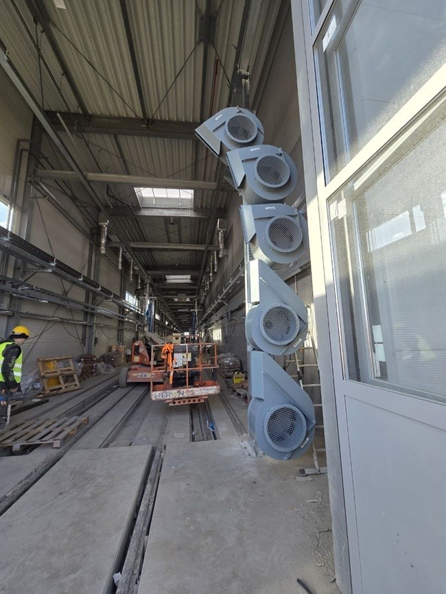 Myjnia została zaprojektowana jako dwukierunkowa. Na wjeździe na stanowisko mycia i przy wyjeździe zamontowane będą wentylatory strumieniowe zdmuchujące poprzez dysze kierunkowe resztki wody po myciu i płukaniu.