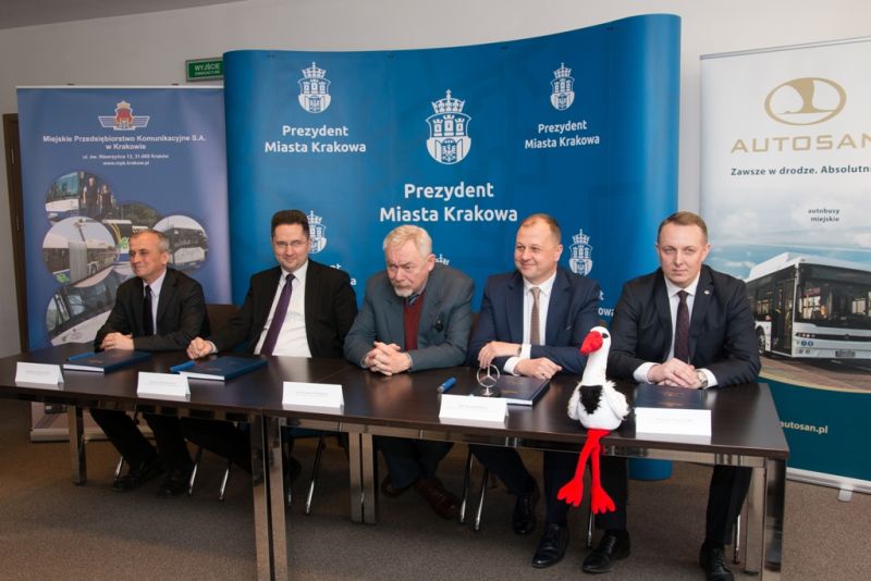 Przedstawiciele Miejskiego Przedsiębiorstwa Komunikacyjnego w Krakowie oraz przedstawiciele dwóch producentów podpisali w piątek, 2 marca dwie umowy na dostawę w sumie 66 nowych ekologicznych autobusów.