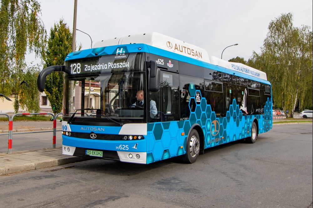 Pasażerowie w Krakowie od dzisiaj (5 października) mogą podróżować kolejnym wodorowym autobusem. Na linii nr 128 (Zajezdnia Płaszów – Prądnik Czerwony) przez kilka najbliższych tygodni będzie bowiem kursował autobus zasilany wodorem marki Autosan o nazwie Sancity 12LFH.