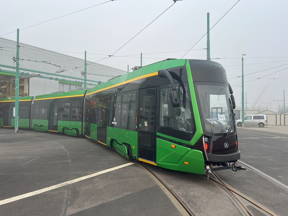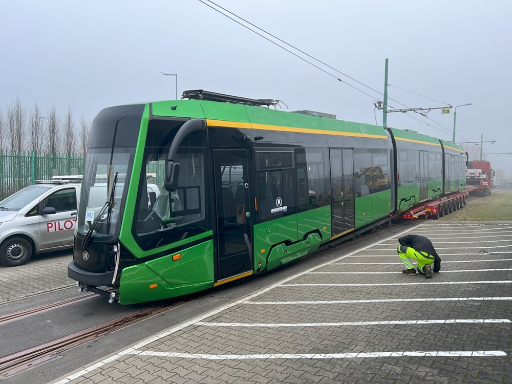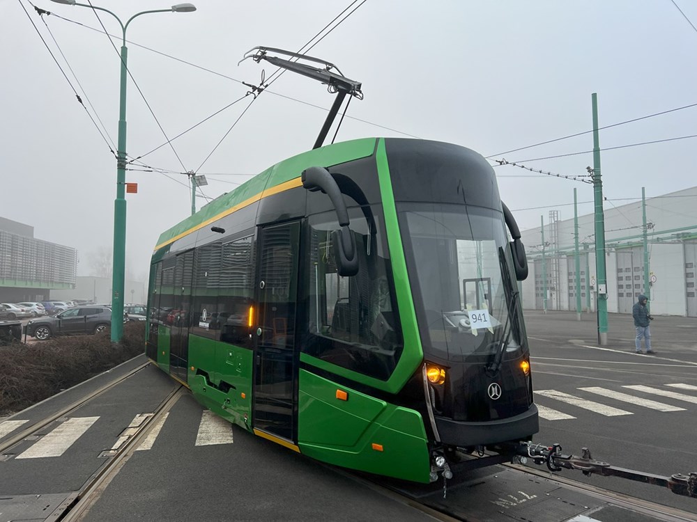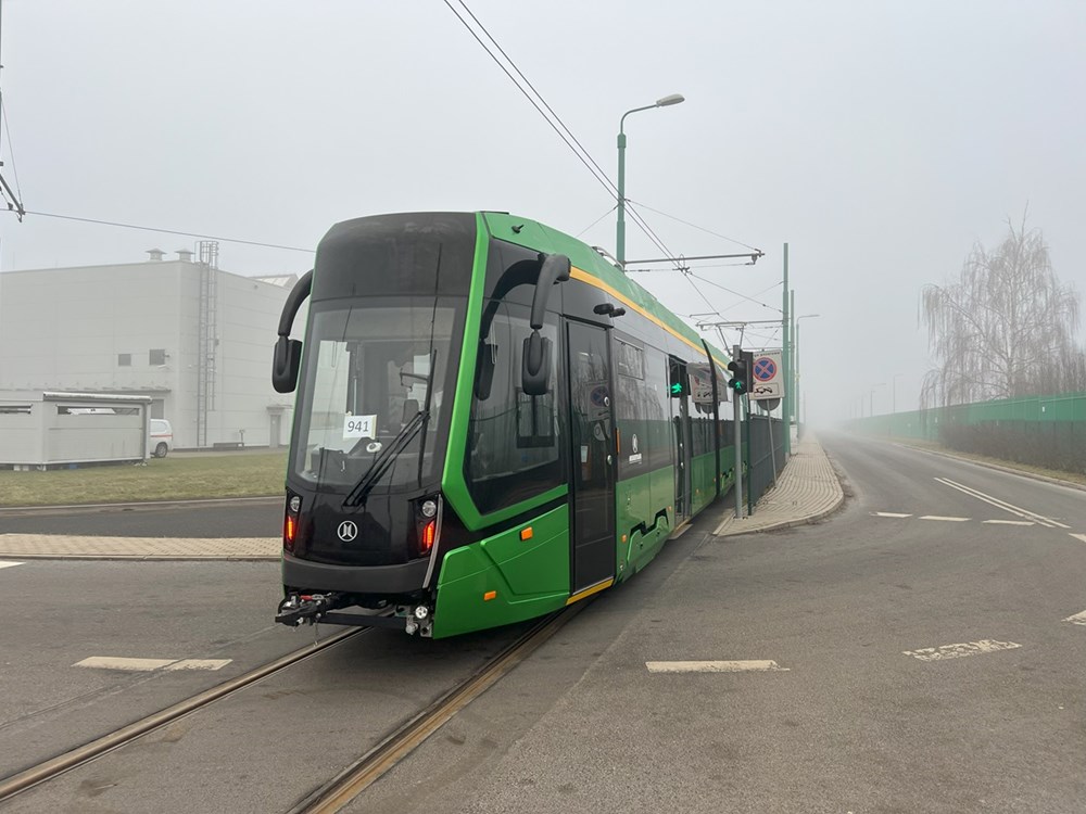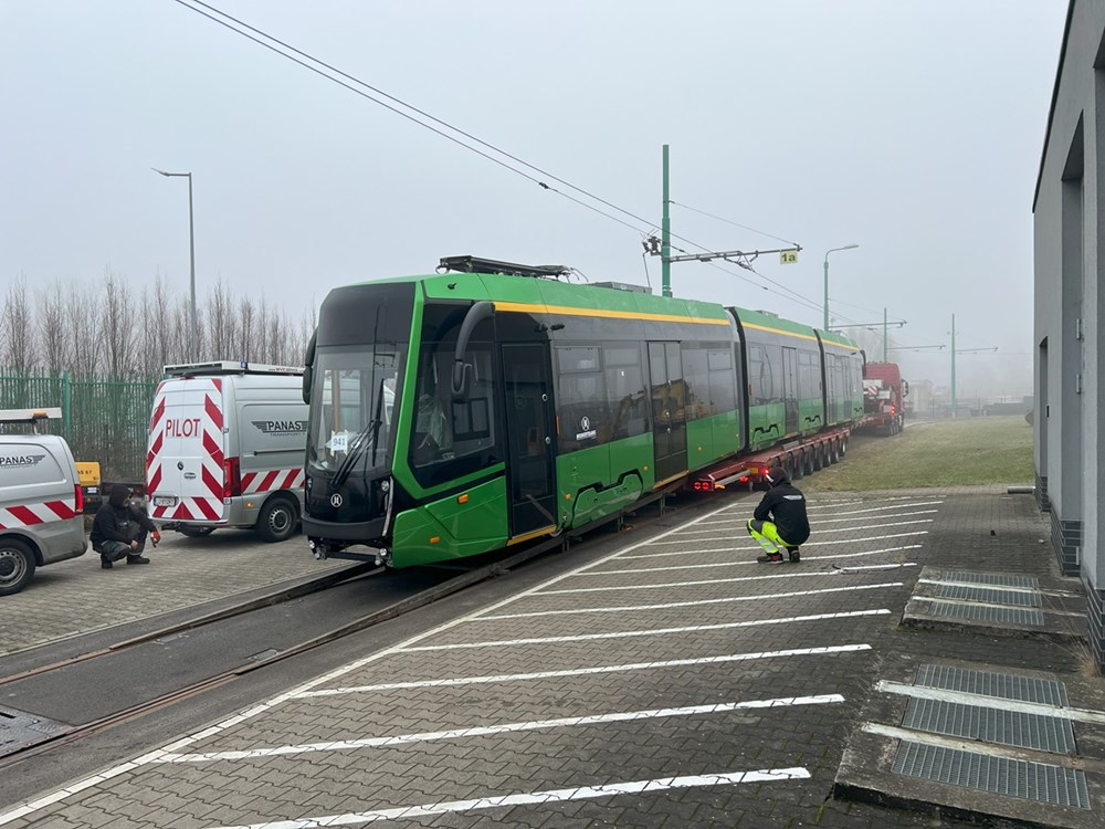 zakupionych przez MPK Poznań. Będzie on nosił numer 941. Rankiem wagon został rozładowany i wprowadzony do jednej z hal największej zajezdni przewoźnika z Poznania. Tramwaj będzie teraz przechodził szereg prób i testów prowadzonych przez producenta - firmę Modertrans, które są niezbędne do zdobycie homologacji nowych tramwajów.