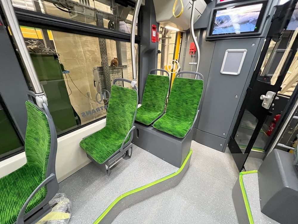 Na zdjęciach z wnętrza widzimy również nieco inny układ siedzeń pasażerskich czy w końcu inny materiał siedzisk, które, poprzez dołożenie większej ilości gąbki, są o wiele wygodniejsze niż te, jakie możemy spotkać w obecnych poznańskich Gammach.