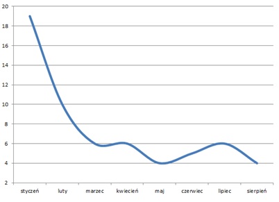 Bieżący rok rozpoczął się 19 wykolejeniami, w lutym było ich wciąż sporo – 10. Jednak od marca do końca sierpnia ich liczba nie przekroczyła sześciu, spadając w niektórych miesiącach do czterech. Cztery to oczywiście o cztery za dużo, ale oznacza to, że statystycznie do zdarzenia dochodziło rzadziej niż raz w tygodniu.