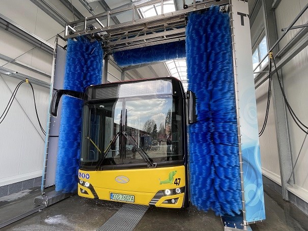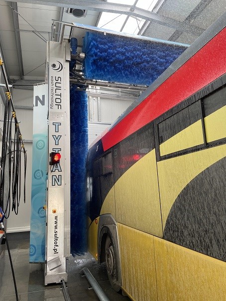 Z kolei, dla mniejszych flot lub w miejscach gdzie wymiary hali nie pozwalają na montaż długiego torowiska do mycia w trybie stacjonarnym, interesującym rozwiązaniem wydaje się TYTAN STOP&GO, gdzie przód i tył myte są podczas chwilowego zatrzymania autobusu, a boki przejazdowo.