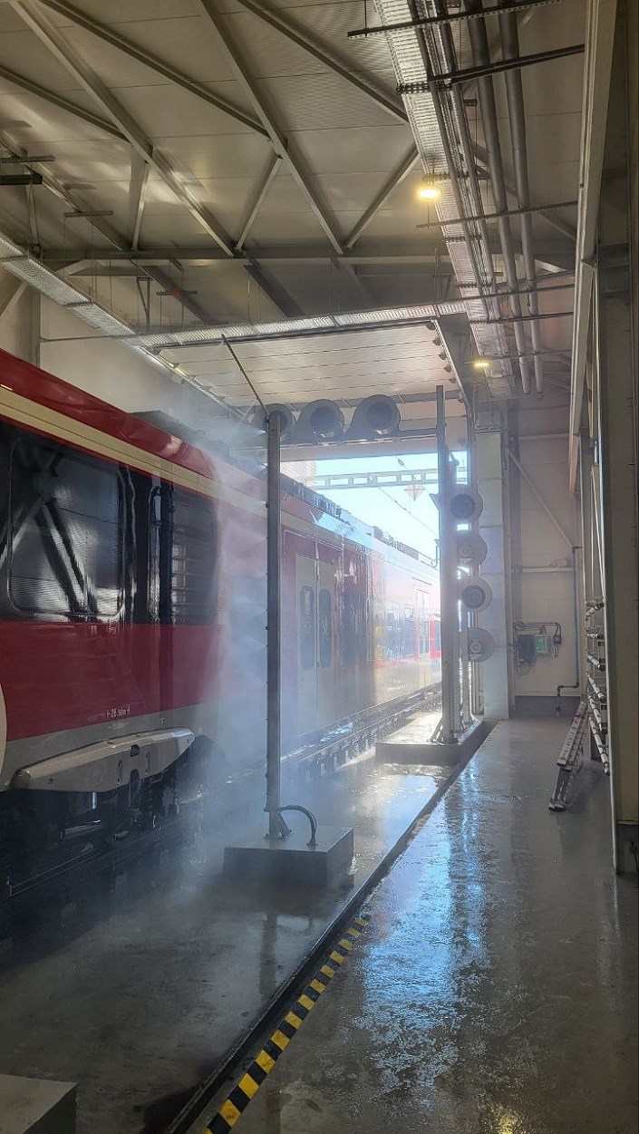 Opisane powyżej rozwiązanie sprawdzi się w krótszych halach i długich autobusach, gdzie nie jest możliwe pełne mycie przy stacjonarne.