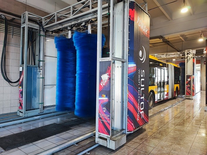 ULTOF YUNAK TANDEM do mycia autobusów komunikacji miejskiej. Model ten został specjalnie opracowany na potrzeby mycia dużych flot autobusowych.