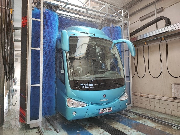 Klient z Sokołowa posiada bardzo zróżnicowaną flotę autobusową. Zaliczają się do niej autokary międzymiastowe oraz leciwe autobusy obsługujące trasy lokalne. Myjnia świadczy również usługi mycia pojazdów ciężarowych.