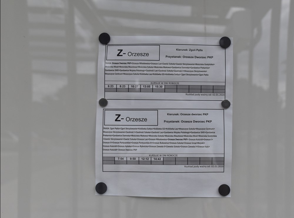 Na dworzec w Orzeszu nie byłem w stanie dotrzeć żadnym autobusem. Może miałem pecha i autobus nie przyjechał? Otóż nie. Okazuje się bowiem, że cały wielki i drogi węzeł obsługują cztery pary busów dziennie. Dowiedziałem się o tym z kartki papieru formatu A4, naklejonej na szklanej, nowiutkiej, klimatyzowanej wiacie. Zdezorientowany, szukałem informacji o innych autobusach, które „przecież muszą” obsługiwać orzeski węzeł za prawie 3 miliony złotych. Aplikacja Jakdojadę nie wskazywała jednak na nic takiego, a miejscowy pracownik kolei, remontujący akurat peron zlokalizowanej po sąsiedzku stacji kolejowej, zaśmiał się tylko i odesłał mnie na przystanek „Orzesze Szpital”, pół kilometra dalej.