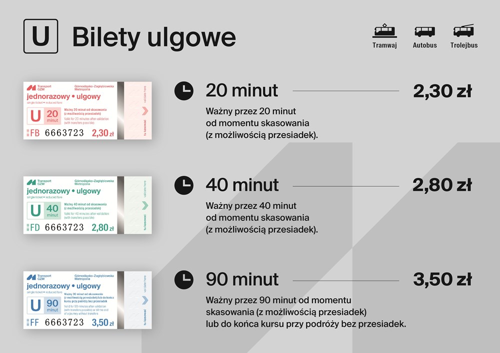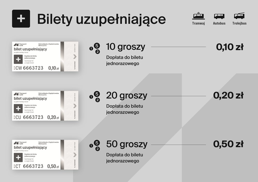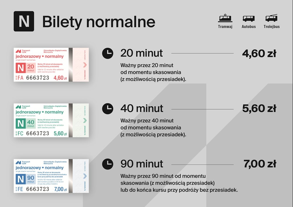 Lada moment do punktów sprzedaży trafią nowe bilety jednorazowe uprawniające do podróży w sieci Transport GZM. Na nowo zaprojektowane bilety zastąpią w sprzedaży stare po wyczerpaniu się ich zapasu.