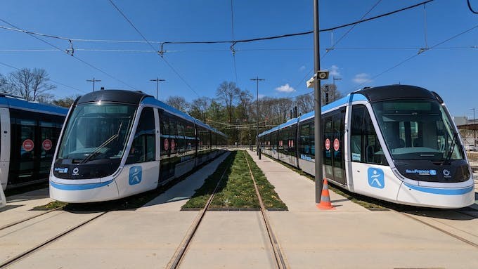 Tramwaje w godzinach szczytu mają kursować co 6 minut. Do obsługi trasy pozyskanych zostało 13 tramwajów Citadis X05 Lumière, które powstały w zakładzie produkcyjnym Alstom w La Rochelle. Pojazdy o długości 45 metrów i szerokości 26,5 metra mogą zabrać w podróż do 314 pasażerów, w tym 72 na miejscach siedzących. Design nowych tramwajów został opracowany we współpracy ze studiem projektowym Saguez & Partners.