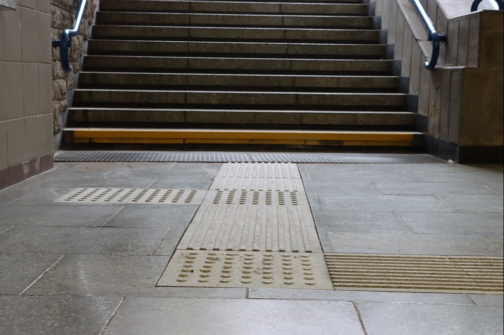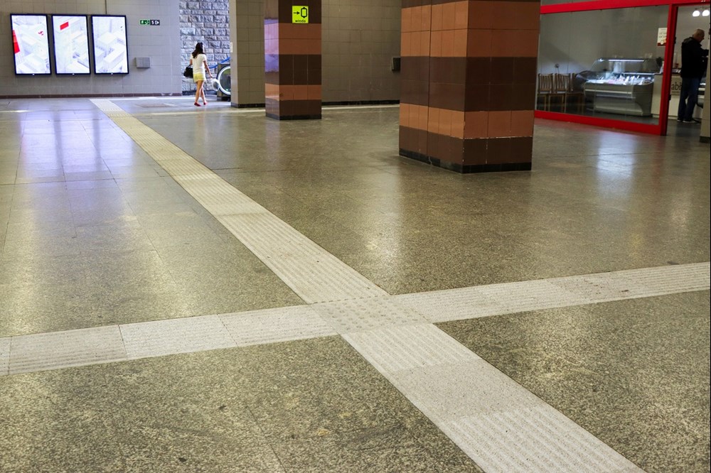 Systematycznie wymieniane jest w metrze oznakowanie dotykowe, które ułatwia poruszanie się po antresolach i przejściach podziemnych osobom niewidomym i niedowidzącym. Obecne ścieżki dotykowe ze stali nierdzewnej, od kilku lat użytkowane w warszawskim metrze, stopniowo zastępowane są lepszym rozwiązaniem – trwalszym, bezpieczniejszym i wygodniejszym dla pasażerów granitem.