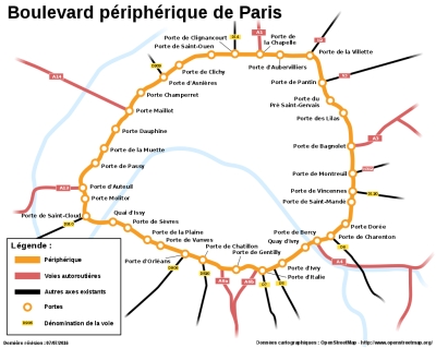 Bulwar Peryferyjny Paryża, znany jako le Peripherique, to zbudowany w latach 70–tych ring autostradowy, który ma 35 km długości i stanowi administracyjną granicę Paryża. Jest też jedną z najważniejszych tras aglomeracji paryskiej, znaną z wiecznych korków. Na liczącej po 3 lub 4 pasy w każdą stronę obwodnicy obowiązują szczególne zasady poruszania się promujące samochody włączające się do ruchu (jednym ze 156 wjazdów, przy czym sześć z nich to węzły autostradowe), bo natężenie samochodów jest tak duże, że inaczej na le Peripherique nie dałoby się wjechać.