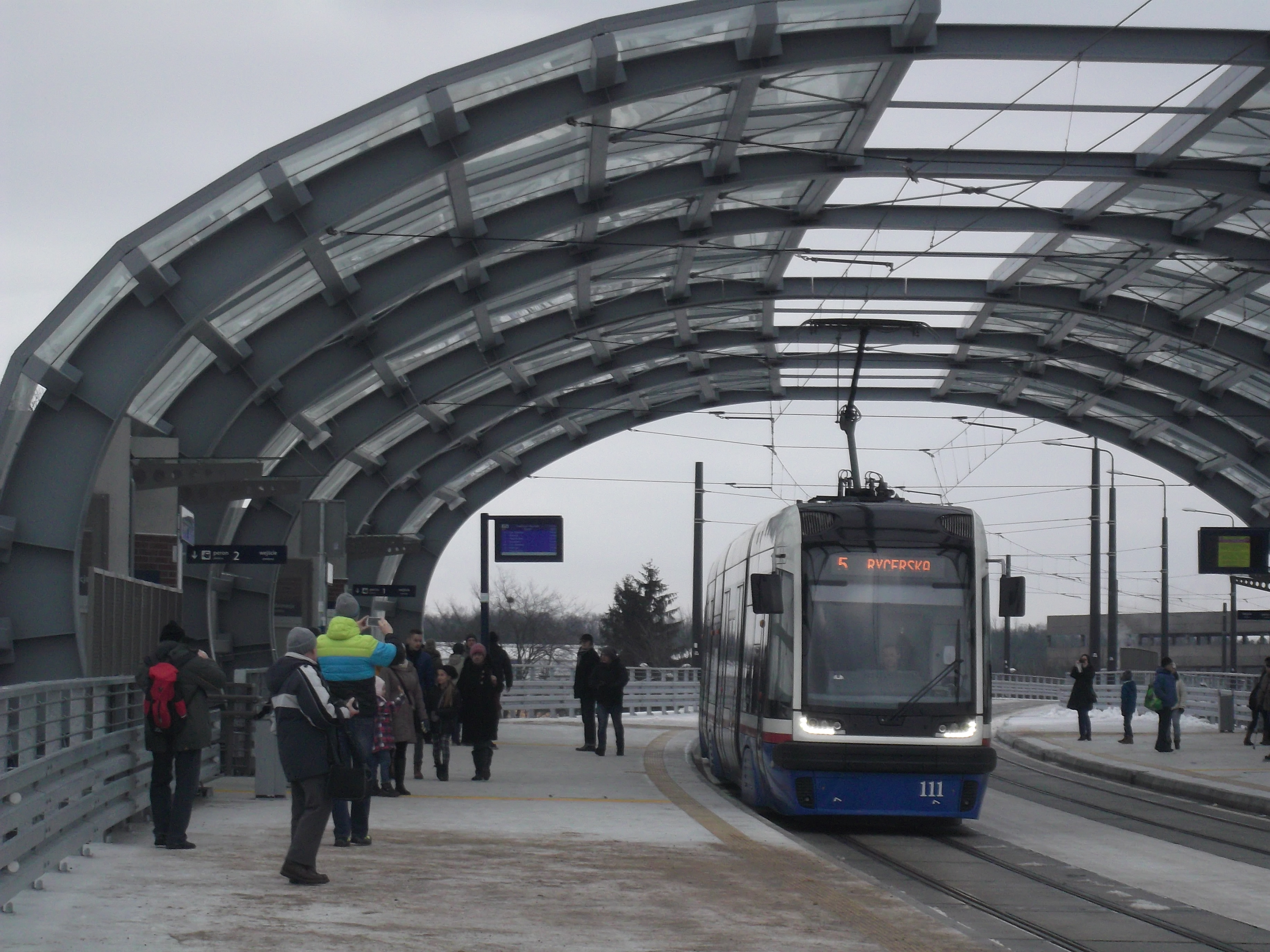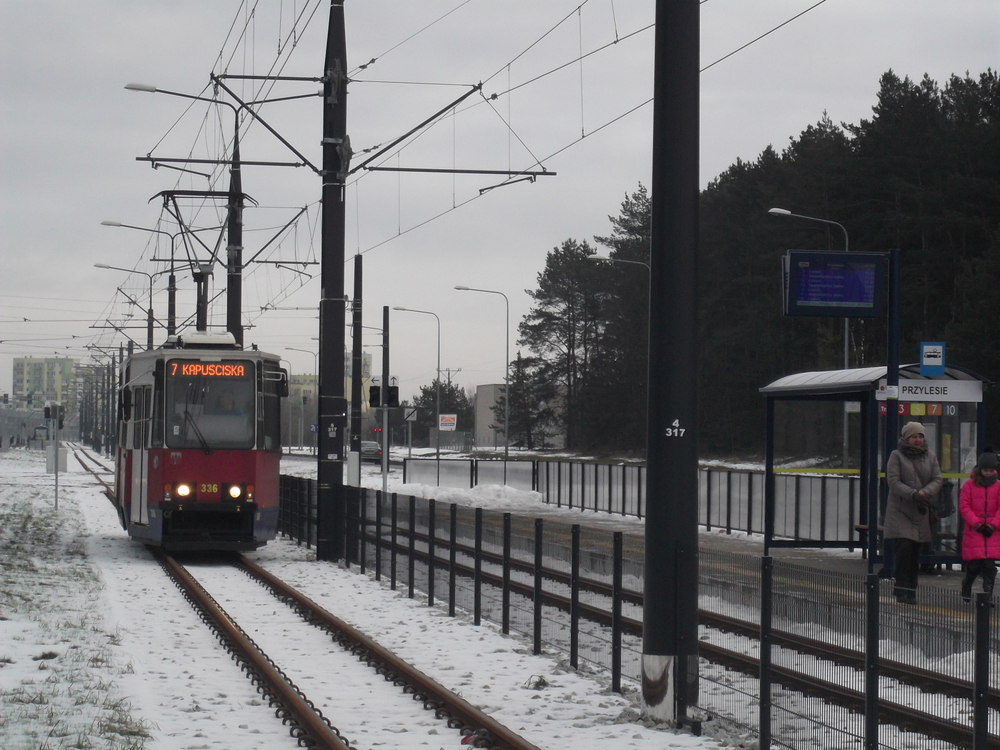 Tramwaj dojeżdża do przystanku Przylesie.