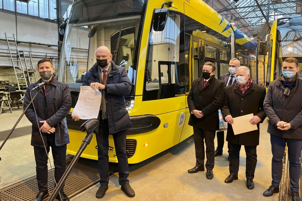 Umowę na dostawę pięciu nowych tramwajów podpisano 21 lipca 2020 r. Ich dostawcą jest wyłoniona w przetargu bydgoska Pesa. Koszt zamówienia to ok. 46,4 mln zł brutto. – Zamówiliśmy w bydgoskiej Pesie pięć nowoczesnych tramwajów. Dzisiaj odbieramy pierwszy, kolejny jeszcze w tym miesiącu, następne w styczniu oraz w lutym. Wszystkie trafią na tory w Toruniu i będą jeździły ku zadowoleniu pasażerek i pasażerów – podkreślił Michał Zaleski, prezydent Torunia. – Są przestronne, wygodne, z nieco większą liczbą miejsc siedzących, niskopodłogowe, przystosowane dla osób niepełnosprawnych, z ładowarkami, wi-fi, a co najważniejsze – jest to transport niskoemisyjny i cieszymy się, że w Toruniu mamy od 130 lat nie tylko tory tramwajowe, ale na tych torach coraz nowocześniejsze tramwaje – dodaje.