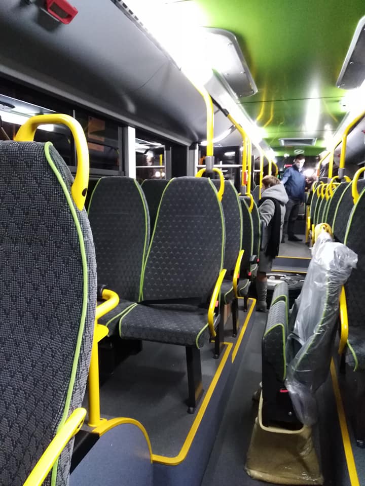 Szkolne Urbino 12 electric, które zamówiła gmina, zmieści na pokładzie na miejscach siedzących aż 41 młodych pasażerów. Wszystkie siedzenia w tradycyjnie pomarańczowym autobusie są wyposażone w pasy bezpieczeństwa. Do tego znajduje się 10 miejsc stojących. Na nadkolach zamontowano półki. Istnieje możliwość zdemontowania foteli przy drugich drzwiach na potrzeby przewozu osoby na wózku. W pojeździe znajduje się też monitoring.