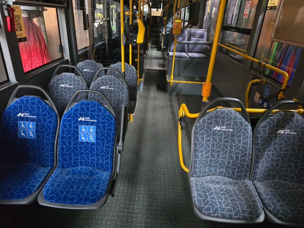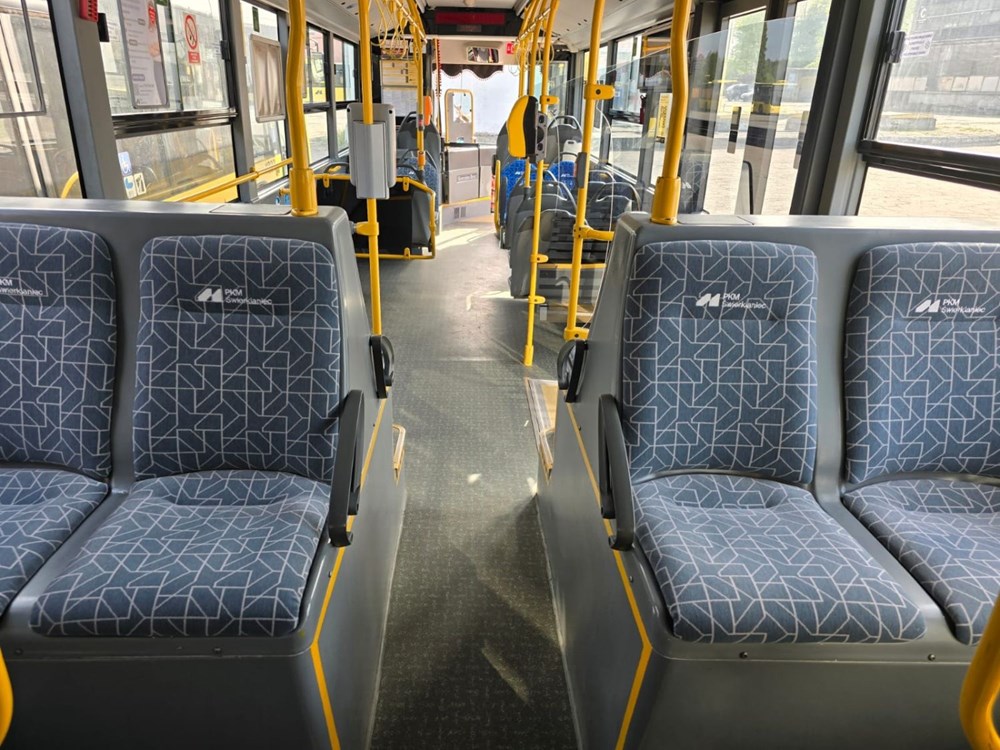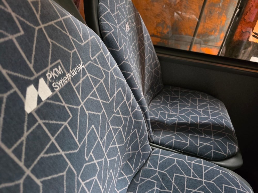 Wraz z malowaniem trwa również wymiana tapicerki w niektórych pojazdach PKM-u. Przewoźnik wykonał już całkowicie nową tapicerkę w jednym z przegubowych Solarisów, który kiedyś kursował w Lublinie. Warto dodać, że jest to pierwszy autobus w sieci ZTM GZM z takim obiciem foteli, które docelowo znajdzie się w każdym autobusie, trolejbusie, pociągu oraz tramwaju obsługującym kursy na zlecenie GZM. Wraz wymianą tapicerki fotele zostały też wyposażone w dodatkową gąbkę, przez co od teraz siedzenia te będą znacznie wygodniejsze dla użytkowników.