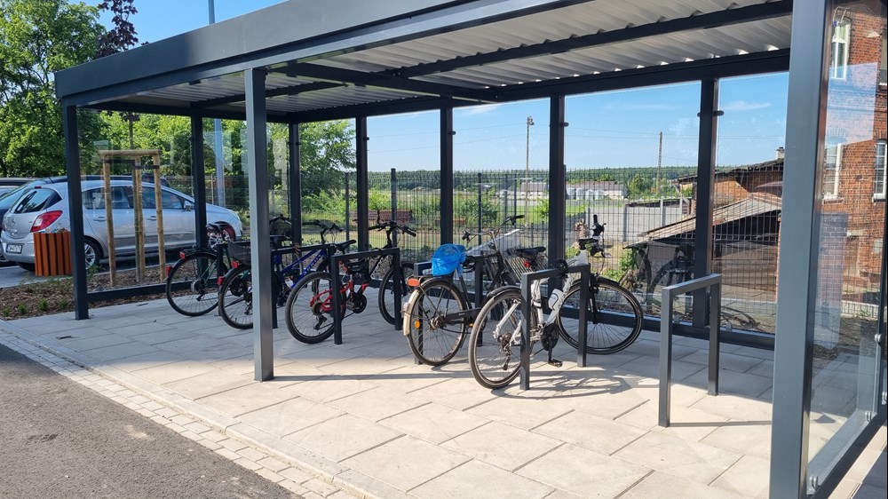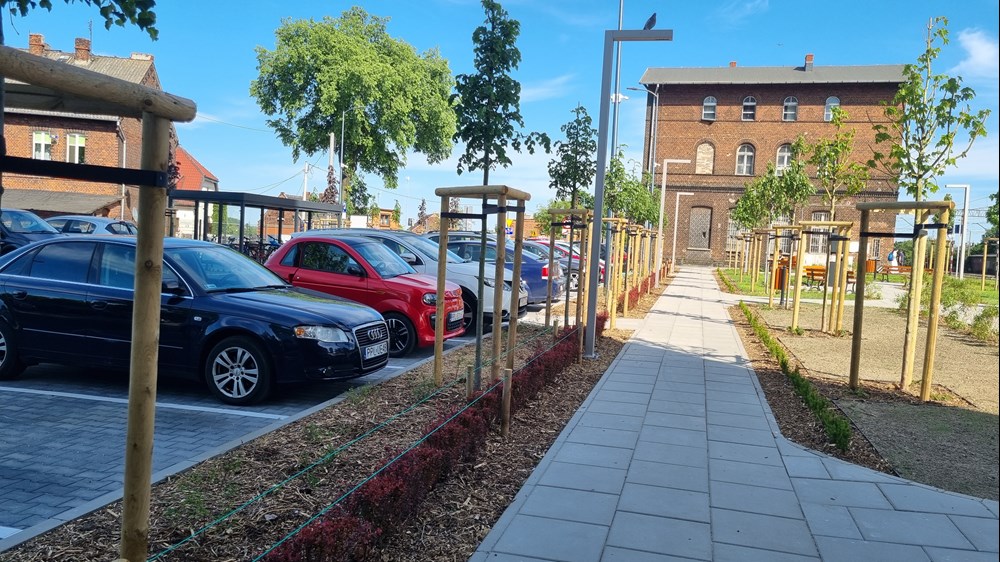 Parking przy stacji kolejowej w podpleszewskim Kowalewie ma 65 postojowych, w tym dwa do parkowania samochodów elektrycznych. Jest też wiata rowerowa. Ale miejsce przy dworcu kolejowym to nie tylko parking. To także skwer z mnóstwem zieleni i miejscami chwilowego odpoczynku. Całość objęta jest monitoringiem.