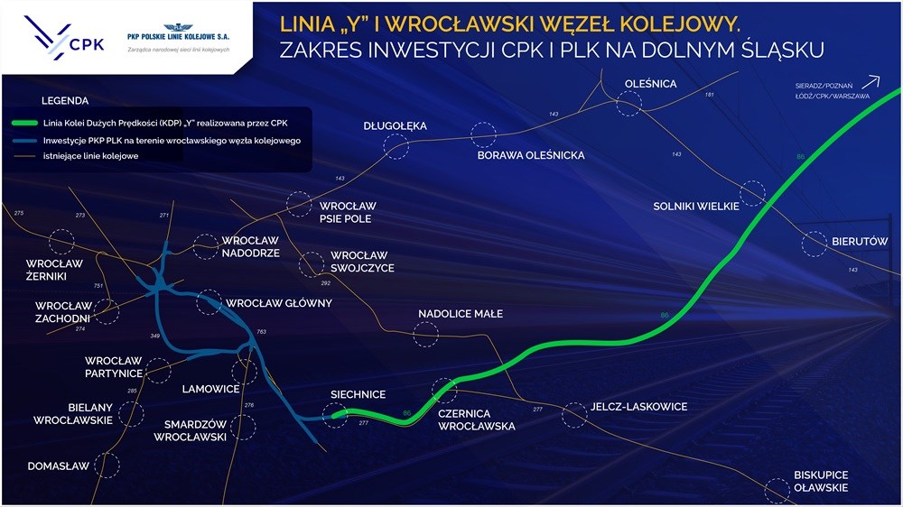 – Z naszego punktu widzenia niezbędny jest uzgodniony z PLK dogodny wjazd pociągów KDP na stację Wrocław Główny. Na mocy podjętych między spółkami ustaleń granica między inwestycjami CPK a PLK, które muszą być realizowane w ścisłej współpracy, została wyznaczona na stacji Siechnice. Wrocławski węzeł kolejowy to istotny element realizowanej przez CPK szybkiej linii „Y” Warszawa – CPK – Łódź – Wrocław / Poznań, która na odcinku wrocławskim jest na etapie zaawansowanego projektowania, uzyskiwania uzgodnień i przygotowań do wykupu nieruchomości. Linia ma być gotowa do końca 2035 r. Naszym celem jest czas przejazdu między Wrocławiem i Warszawą poniżej 100 minut – mówi Piotr Rachwalski, członek zarządu CPK ds. kolei.