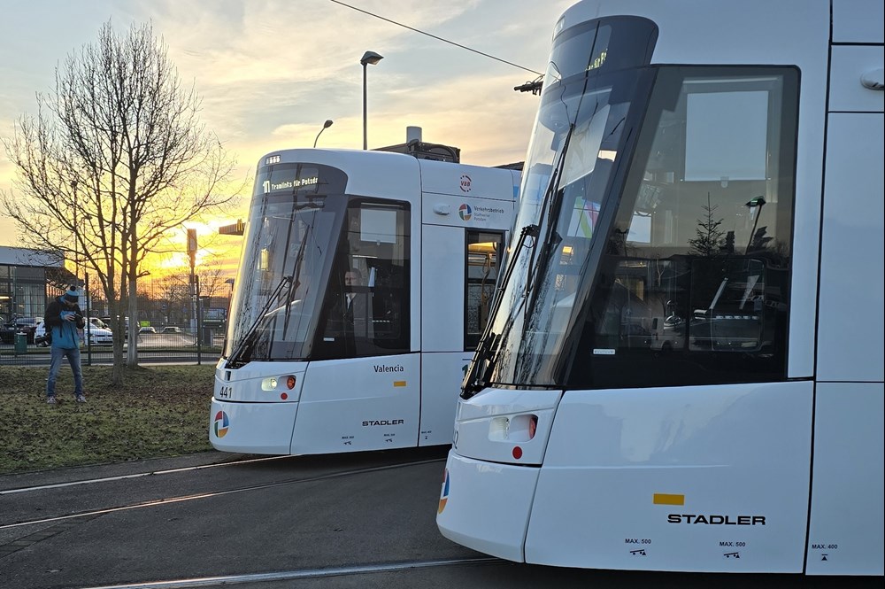Pierwsze dwa z 13 zamówionych przez ViP Verkehrsbetrieb Potsdam tramwajów Tramlinków u firmy Stadler weszły już do regularnej służby w Poczdamie. Pojazdy pomyślnie przeszły testy i zostały technicznie odebrane. Pierwszy nowy tramwaj wyjechał 18 grudnia i o 16:01 rozpoczął swój kurs z przystanku Gaußstraße.