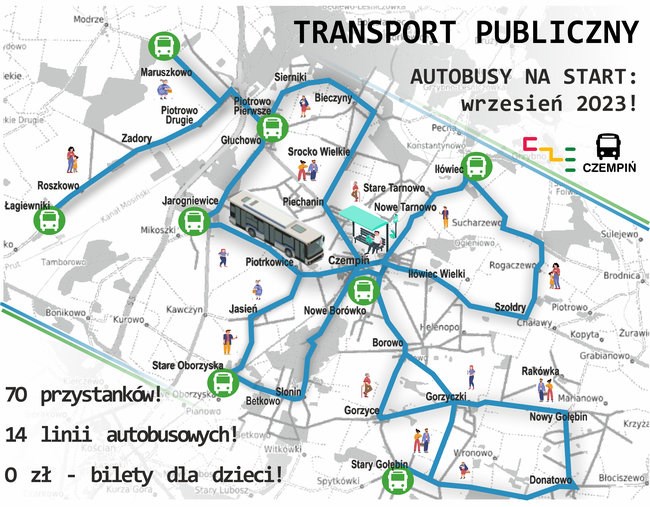 Już od 4 września 2023 roku autobusy regularnej komunikacji publicznej pojawią się na trasach łączących większość miejscowości w gminie Czempiń, ale nie tylko. Kursy dojadą do miejscowości: Czempiń, Piechanin, Srocko Wielkie, Bieczyny, Sierniki, Głuchowo, Piotrowo Pierwsze, Maruszkowo, Piotrowo Drugie, Zadory, Roszkowo, Łagiewniki, Jarogniewice, Piotrkowice, Jasień, Stare Oborzyska, Betkowo, Słonin, Borowo, Gorzyce, Gorzyczki, Donatowo, Nowy Gołębin, Stary Gołębin, Stare Tarnowo, Iłówiec, Szołdry, Iłówiec Wielki.