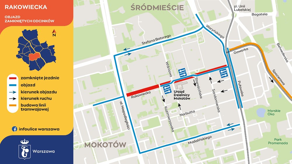 Zamknięty fragment Rakowieckiej będzie można ominąć aleją Niepodległości – do Stefana Batorego lub Madalińskiego. Trasy autobusów pozostaną bez zmian.