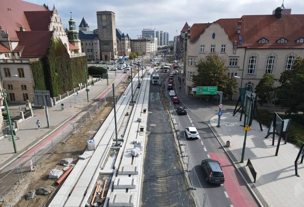 Postępujące prace na odcinku ul. Św. Marcin między ul. Gwarną a mostem Uniwersyteckim dotyczą zarówno torowiska tramwajowego, jak i jezdni. W zeszłym tygodniu rozpoczęło się układanie głównej warstwy nawierzchni bitumicznej na pierwszych fragmentach ul. Św. Marcin i al. Niepodległości. PIM zapowiadają, że priorytetem dla spółki jest jak najszybsze przywrócenie ruchu tramwajowego na części Świętego Marcina, od Kaponiery do skrętu w ulicę Towarową.