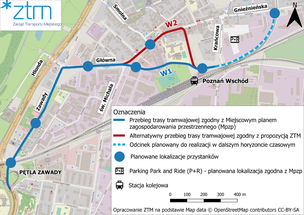 – Do tej pory zakładaliśmy, że za Rynkiem Wschodnim odbijamy na południe, wzdłuż szkoły nr 45 i kończymy bieg tramwaju w rejonie stacji Poznań Wschód, natomiast aktualnie ten wariant raczej nie będzie możliwy i będziemy musieli pomyśleć o tym, w którym kierunku prowadzić tramwaj po minięciu Rynku. Być może skierujemy go prosto, ulicą Główną, w kierunku ulicy Gnieźnieńskiej, a dokładniej w rejon linii kolejowej do Wągrowca. W tym momencie nie chcę tego ostatecznie przesądzać, bowiem wolę, żeby ta decyzja zapadła po analizach eksperckich. Drugim wariantem, który można w tym momencie rozważać, jest zakończenie tej trasy w rejonie ulicy Nadolnik i wjechanie tramwajem nieco w głąb tej ulicy. Trzecia opcja to skręt z Głównej w ulicę Gdyńską i zakończenie trasy w tamtym rejonie. To jest też kwestia, nad którą również w kolejnych miesiącach będziemy pracować i myśleć o tym, jak rozwiązać końcówkę tej trasy, choć ostateczne decyzje będą zależne od działań PKP PLK wobec stacji Poznań Wschód – referuje samorządowiec.