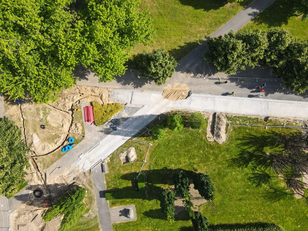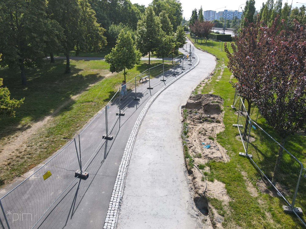 – Nowe drogi rowerowe powstaną po obu stronach ul. Królowej Jadwigi, między mostem a ulicami Strzelecką i Droga Dębińska, a także na odcinkach ul. Strzeleckiej i Kazimierza Wielkiego. Część powstaje w pobliskim parku, gdzie trwają prace ziemne przygotowujące podłoże pod nową trasę, a także rozpoczęło się układanie konstrukcji drogi rowerowej i opaski z kamiennej kostki. Postępuje tam także budowa nowego oświetlenia. Na pozostałych odcinkach wykonawca wygrodził teren i zabezpieczył drzewa – wymienia Tomasz Płóciniczak, wiceprezes spółki Poznańskie Inwestycje Miejskie.