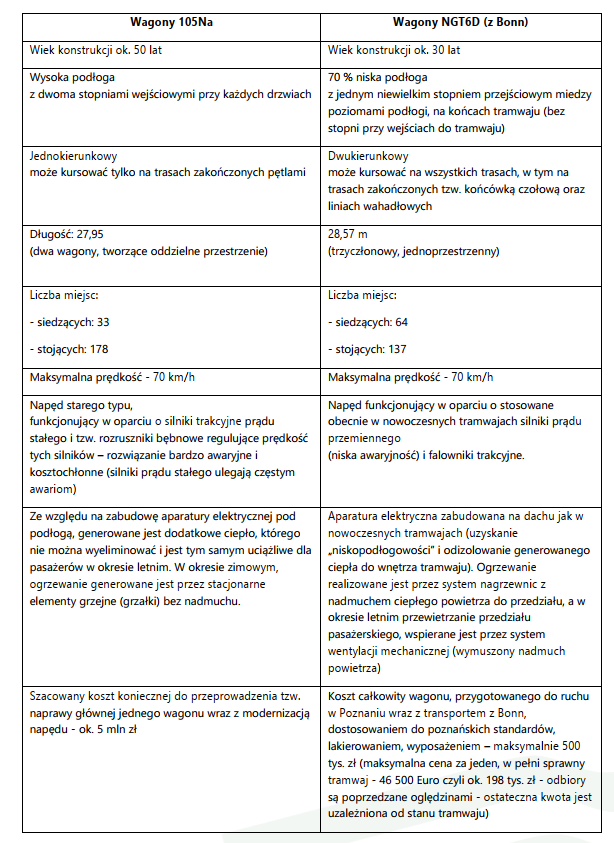 Przypomnijmy, że zgodnie z umową pomiędzy MPK Poznań a przewoźnikiem z Bonn maksymalna cena za jeden, w pełni sprawny wagon wynosi 46 500 Euro (odbiory są każdorazowo poprzedzane oględzinami, a ostateczna kwota jest uzależniona od stanu tramwaju). To znaczy, że cała partia 24 pojazdów wraz z częściami zamiennymi kosztować będzie mniej niż jeden nowy tramwaj! Co więcej, umowa daje Spółce prawo rezygnacji z wagonów, które będą uszkodzone (np. w wyniku wypadków) i co do których nie zostanie osiągnięte porozumienie w sprawie ceny.