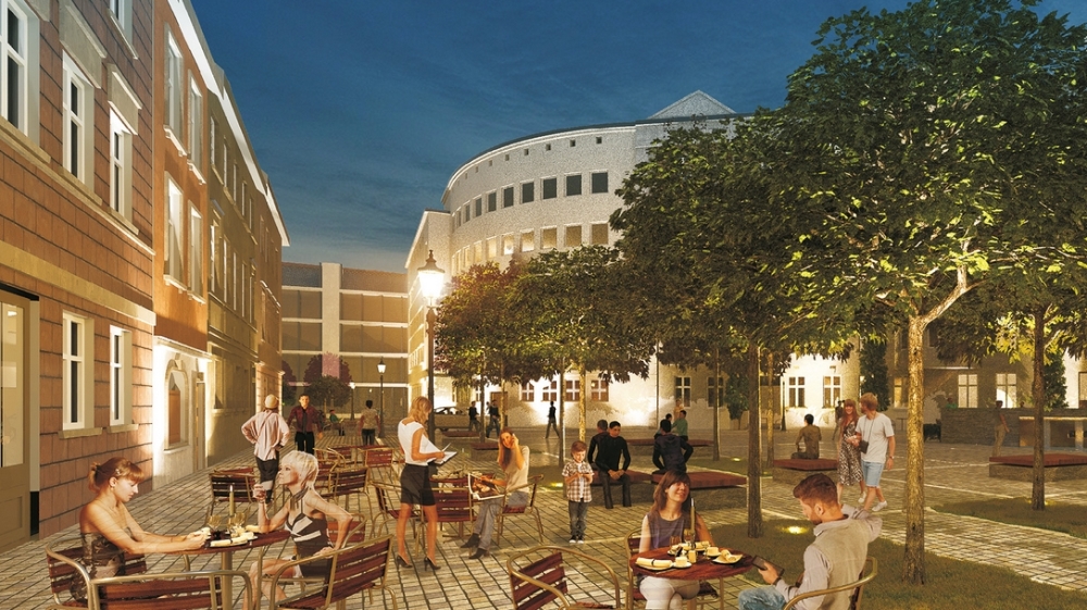 Plac będzie przyjazny dla osób z niepełnosprawnościami i pozbawiony barier architektonicznych. Mozaikowa nawierzchnia z granitowej kostki będzie odpowiednio wyprofilowana, antypoślizgowa i nastrojowo podświetlona.
