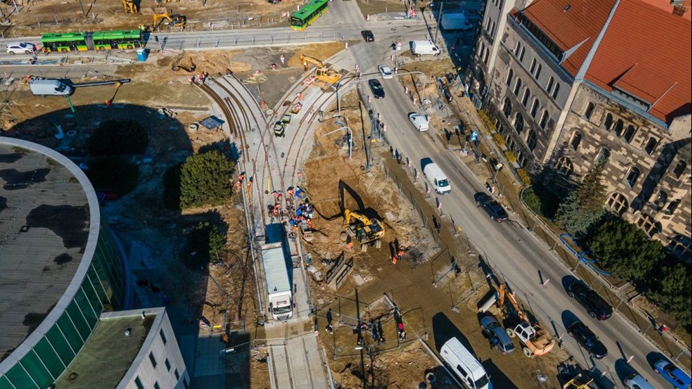 – We wtorek połączone zostały tory na prawym łuku z ul. Towarowej w ul. Św. Marcin, co ma wymiar niemal symboliczny, gdyż w ten sposób powstaje nowy prawoskręt dla tramwajów. Na czwartek zaplanowano zespawanie torów na moście Uniwersyteckim, gdzie nowa infrastruktura połączy się z tą ułożoną podczas przebudowy ronda Kaponiera. Do wykonania pozostały jeszcze prace torowe na lewoskręcie z ul. Towarowej – mówi Tomasz Płóciniczak, wiceprezes spółki Poznańskie Inwestycje Miejskie.
