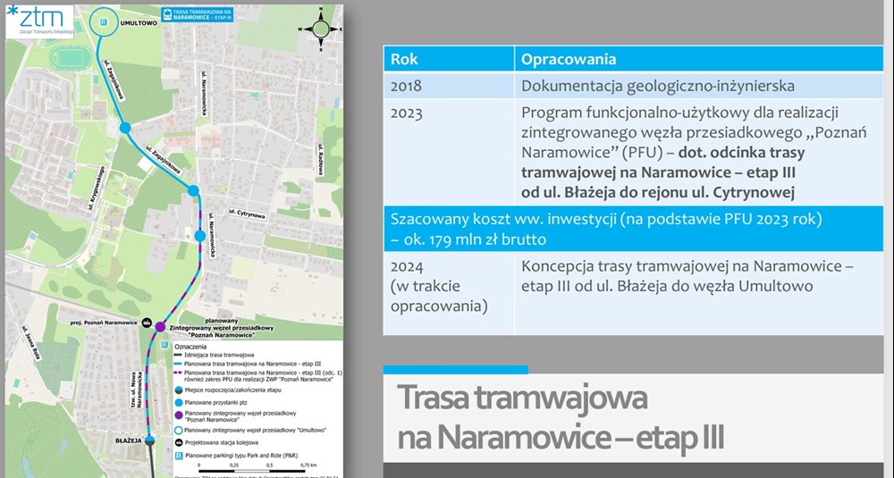 Pierwszą nową inwestycją, którą przybliżył dyrektor była budowa trzeciego etapu tramwaju na Naramowice, od krańcówki Błażeja do pętli końcowej zlokalizowanej na Umultowie. ZTM Poznań dysponuje w tym przypadku dokumentację geologiczno-inżynierską oraz