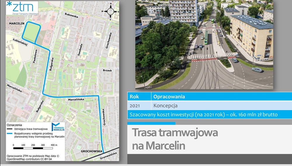 W prezentacji pojawił się również tzw. Tramwaj na Marcelin, lecz dyrektor ZTM-u nie poświęcił tej koncepcji zbyt wiele czasu, poza wspomnieniem o konsultacjach społecznych z 2021 roku. Obecnie miasto nie prowadzi żadnych działań ku realizacji tej inwestycji.