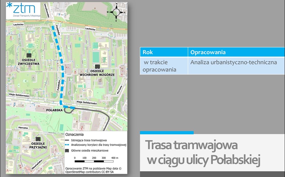 przebijała się w dyskusji o krótkich odcinkach dla taboru dwukierunkowego jest wydłużenie torów od pętli Połabska na północ, wzdłuż ulicy o tej samej nazwie, w rejon skrzyżowania z ulicą Lechicką. Aktualnie ZTM analizuje tę inwestycję.