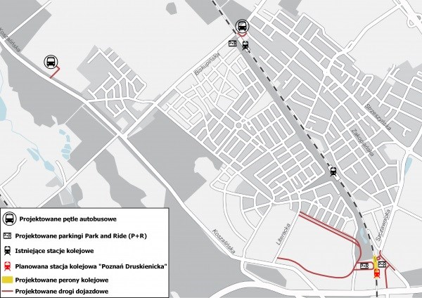 Trzebiatowski dodał również, że po obu stronach torów zaplanowano budowę nowych parkingów Park and Ride, Bike and Ride oraz miejsc postojowych w formie Kiss and Ride. – Uzupełnieniem węzła przesiadkowego w zachodniej części jest planowana pętla autobusowa wraz z budynkiem obsługi technicznej i ogólnodostępną toaletą – napisał rzecznik poznańskiego ZTM.