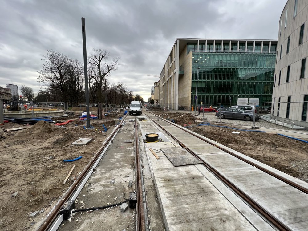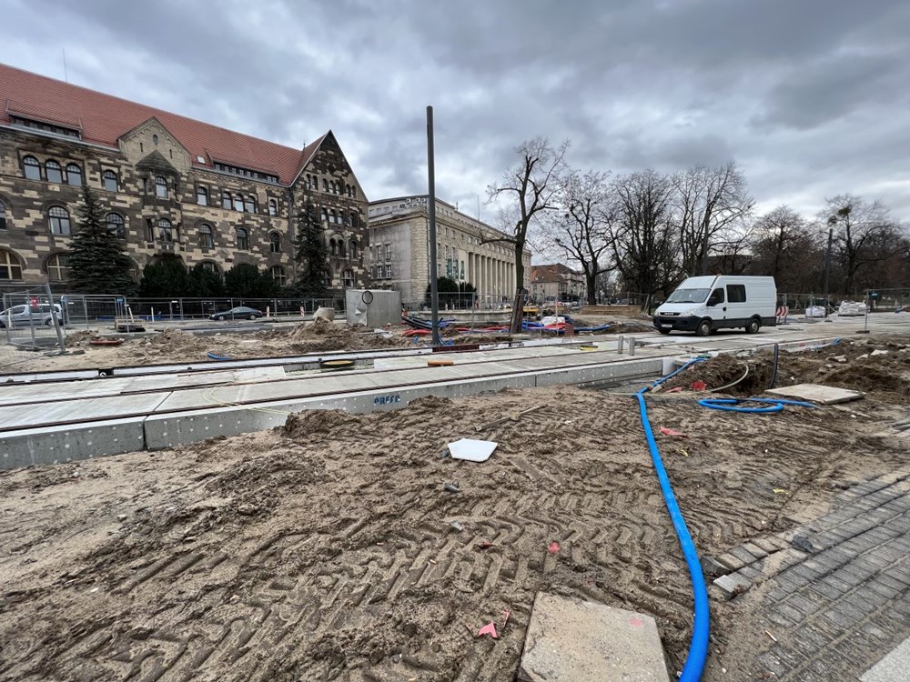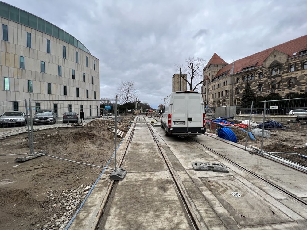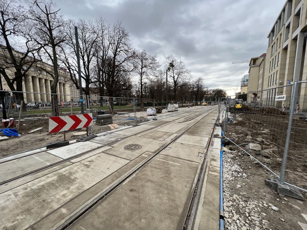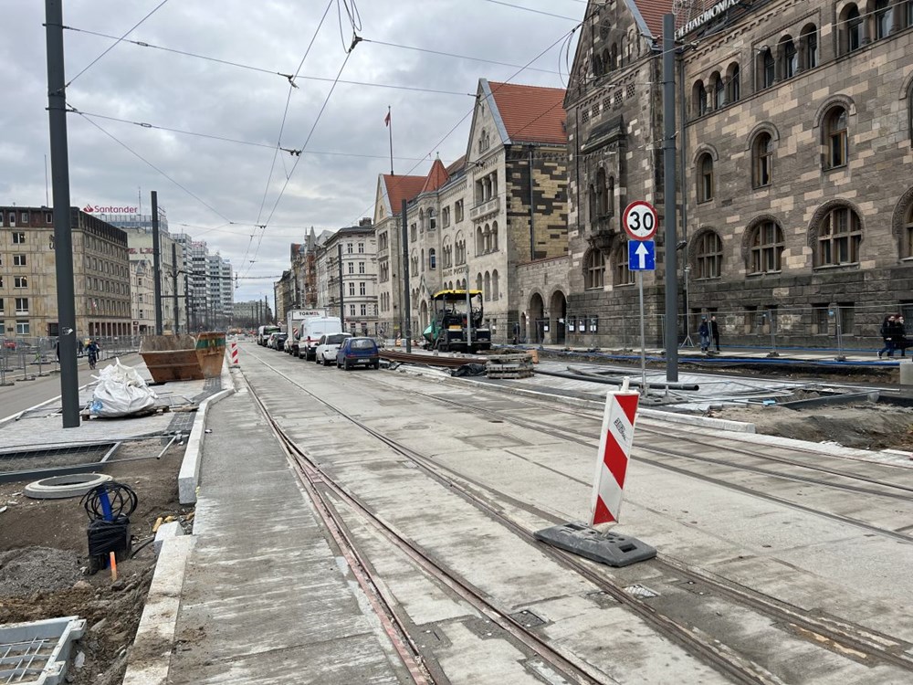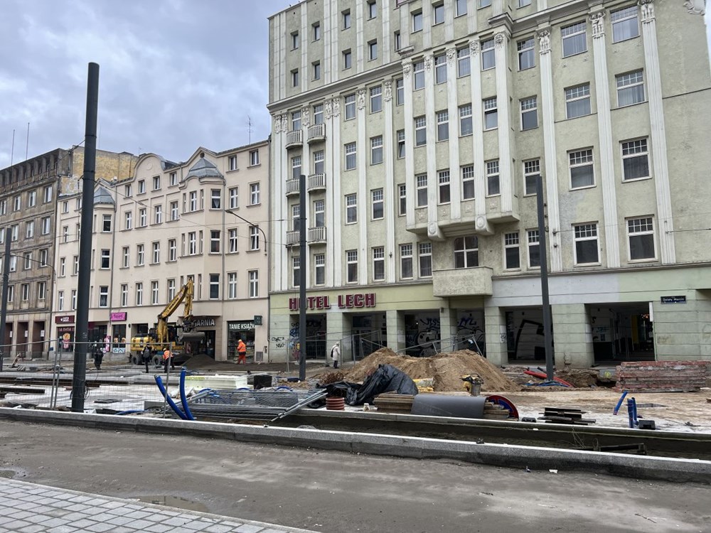 Chłopocka dodała też, że zabetonowano już torowisko na ulicy Towarowej , a w najbliższym czasie wykonawca ma skupić się na budowie odwodnienia torowiska na ul. Towarowej, wykonaniu warstwy podbudowy i układanie kostki granitowej w międzytorzu na ul. Św. Marcin na wysokości ul. Wieniawskiego, a także na pracach przy fundamentach słupów trakcyjnych na Towarowej.