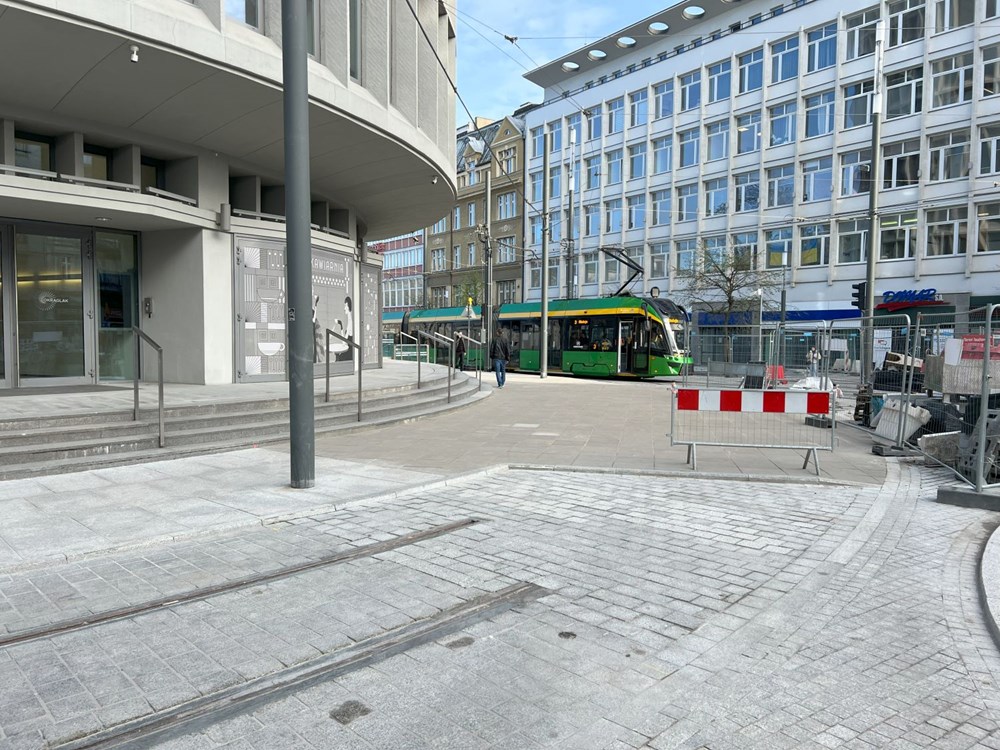 kursują już od połowy grudnia, to prace przy chodnikach i drodze rowerowej wciąż trwają. Ponadto od wielu miesięcy w oczy rzucał się zastój przy budowie tramwajowego łuku, prowadzącego wagony z 27 Grudnia w ulicę Mielżyńskiego (jest to zupełnie nowa relacja skrętna, której do tej pory brakowało), którego budowa stanęła, a ostatnio w miejscu planowanego łuku pojawiła się kostka brukowa.