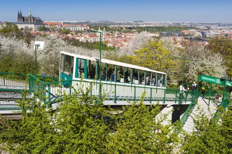 Funikuler, który funkcjonował w Pradze do września, wybudowano w latach 1981-1985. Pierwsza kolejka na Petřín powstała w 1891 roku – w tym samym czasie co wieża widokowa – i miała częściowo inną trasę. Była prostsza i nieco krótsza. Stacja dolna była nieco wyższa od obecnej. Górna stacja znajdowała się w pobliżu restauracji Nebozízek. Druga kolejka została uruchomiona 5 czerwca 1932 roku i przez wiele lat była popularną atrakcją turystyczną. Jej los również przerwały ulewne deszcze, które podmyły torowisko, przez co zakończyła ona swoje funkcjonowanie w lipcu 1965 roku.