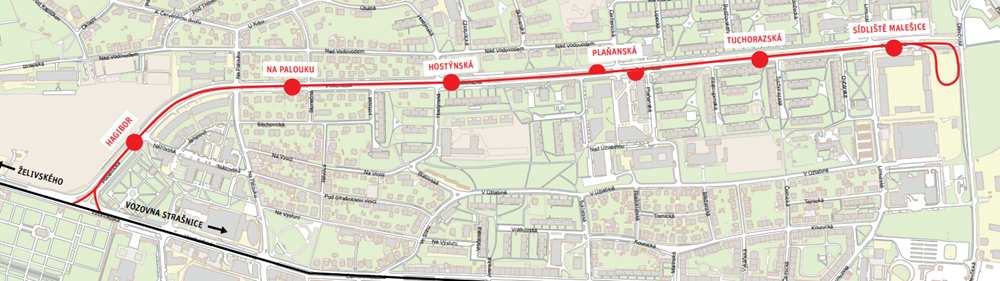 Osiedle Malešice zostało w dużej mierze wybudowane w latach 60. XX w. Wówczas też wybudowano ulicę Počernicką z rezerwą pod tramwaj w pasie dzielącym. Temat budowy komunikacji szynowej powracał wielokrotnie. Dotąd jako przeszkodę w realizacji tych planów podawano konieczność kosztownej przebudowy wiekowych instalacji wodociągowych.