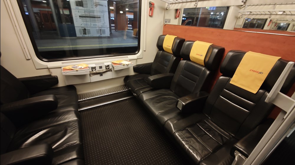 Drugi odcinek przejechaliśmy w wagonie łączonym – klasy Relax i Buissnes, czyli druga i pierwsza klasa. W "jedynce" mamy przede wszystkim czteromiejscowy przedziały z większą przestrzenią wokoło, co na pewno daje większy komfort podróżowania. Tutaj również można spokojnie popracować, dzięki rozkładanym stolikom pod oknem i od korytarza, a nawet nieco się zdrzemnąć. Co warto zaznaczyć, w tym wagonie, pod stolikami zainstalowano już małe śmietniczki.